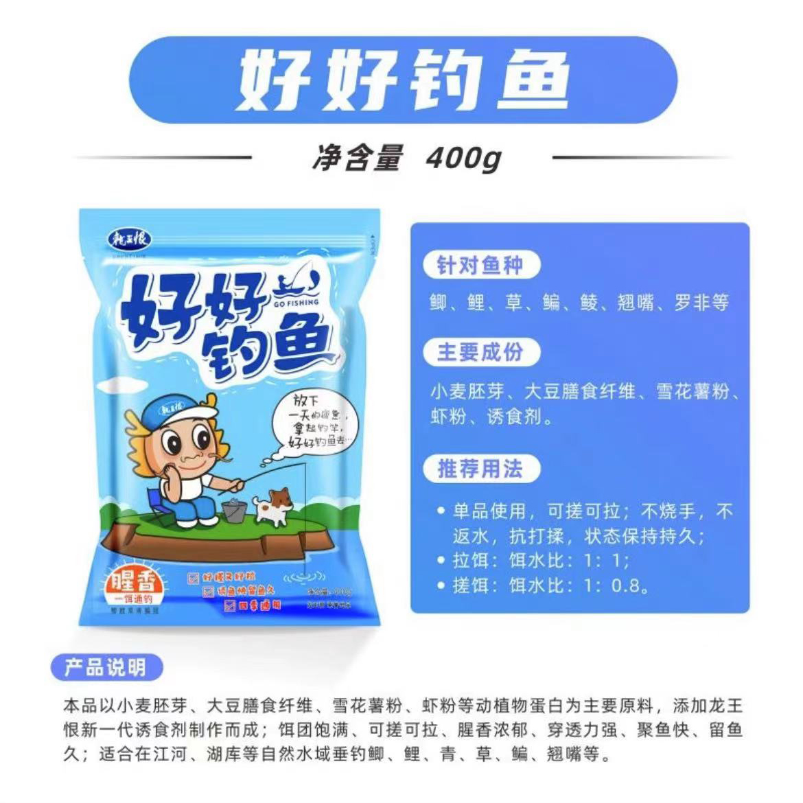 龙王恨 好好钓鱼一包搞定四季通用腥香型 限时特价!整件包邮【偏远除外】